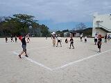 今週月曜日から健康委員会の体育グループが「外遊び100%デー」の取組を進めています。今回は、ドッジボール大会です。ふれあい遊びの縦割り班がチームとなり、他のチームと対戦します。今週は天気もいいので、子ども達の元気いっぱいの声が運動場中に響きわたっています。