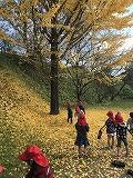 さいと学の学習で、とのこおり城址の探検をしました。きれいに色着いた葉をたくさん集め、空にむかってほうり投げると、青かった空が黄色く変身しました。
