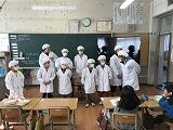 家庭科室の前を通ると、いいにおいがしてきました。教室をのぞくと、6年生が調理実習をしていました。ジャガイモやホウレンソウなどを使った料理でした。美味しそうでしたよ。