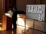 1年生は、訓練前の学習中です。3年生は、階段を静かに下りてきました。