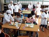 3学期に入り、給食当番の練習をしている1年生。今日も6年生に教えてもらいながら、ていねいに配膳や片付けを進めていました。3月には、1年生だけで当番ができるようにする予定だそうです。がんばってね、1年生。