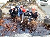 5年生が、流水園の氷の厚さを測ってくれました。何と1.2cmもありました。
