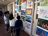 今日、図画の作品掲示を行いました。西都市内の小学校から集められた優れた作品の数々です。早速、4年生の子ども達が、鑑賞していました。それぞれ、お気に入りの作品に出会ったようでした。