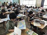 ALTの先生にもお越しいただき、今日はさっそく3~6年生が英語の学習をしました。