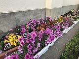 あたたかい春の日差しをうけて、学校の花々が元気に花を咲かせています。