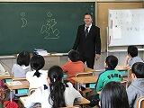 ALTの先生にもお越しいただき、今日はさっそく3~6年生が英語の学習をしました。