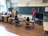 本校の外国語教育の取組をご説明した後、5年生の授業を参観していただきました。