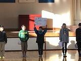 次に、来週の給食ありがとう週間に合わせて、保健・給食委員会が給食に関する〇✕クイズを出してくれました。