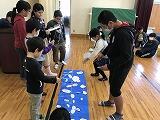 午前中の前半は、校内で5年生が考えたゲームをしました。ふれあい班ごとにいろんなコーナーを回り、協力しながら楽しく活動することができました。