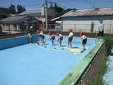 本日、5・6年生がプール清掃をしました。大プール、小プール、シャワーやプール周辺等、暑い日差しのもと一生懸命頑張りました。1年間の汚れをきれいに落とすことができました。いよいよ6月からは、水泳指導が始まります。