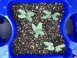 1年生が植えたあさがおの芽が出ていました。毎日お世話をして、きれいな花が咲くとよいですね。