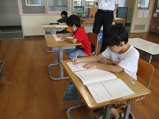 いつもと違って教室の後ろが気になって仕方ない子どもたち。