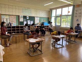 いつもと違って教室の後ろが気になって仕方ない子どもたち。