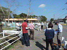 大型車両が多く登下校に危険な場所や、川・茂みに落下しそうなところを確認しました。