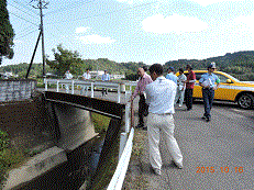 大型車両が多く登下校に危険な場所や、川・茂みに落下しそうなところを確認しました。
