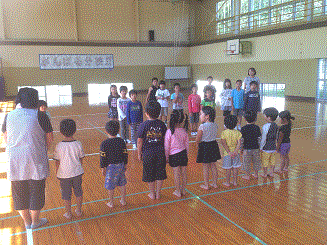 山田分校では、伝統的に棒踊りの練習を続けています。