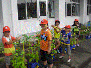 1年生が、朝顔を育てています。毎日、朝に水をあげてお世話をしています。子ども達は、毎朝、朝顔の花を見るのがとても楽しみのようです。「今日は、花が4つ咲いていた。やったあ。」
