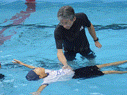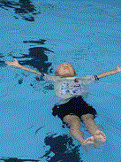 次に、1リットルのペットボトルを使って、浮く練習をしました。こつは、ペットボトルを胸のところの持ってきてリラックスして背浮きすることでしたが、だんだんと上達してきました。