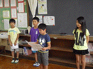 その後、3年生の4名が「1学期がんばったこと」という題で作文発表をしました。4人ともしっかりした内容の発表ができました。