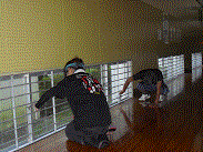 8月21日(日)の午後5時から、分校の体育館掃除をしました。体育振興会の藤堂さん、夜間に体育館を使用しているクラブの代表者の方々、分校の職員で、体育館の床や窓ガラス等すみずみまで掃除しました。1時間程度で、体育館がとてもきれいになりました。