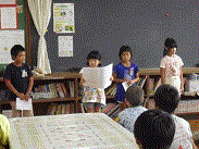 子供たちがとても楽しみにしている分校キャンプが始まりました。2年生教室に集合して、4つの班に編制しました。その後、保護者と一緒に奉仕作業をしました。暑い中、草集めを一生懸命しました。
