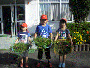 今日から、2学期が始まりました。子ども達は、元気な姿で登校してきました。朝は、いつも通り、早速奉仕活動をしました。たくさんの草を集めました。