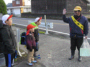 山田分校では、1月6日(金)から12日(木)まで、立ち番指導となっています。朝の寒い時間に保護者の方が、校門に立たれて、子ども達の登校の様子を見守っています。