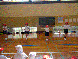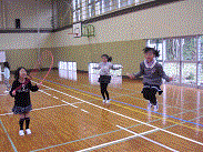 今日から、業間活動での縄飛び練習が始まりました。まず、4年生がいろいろな跳び方のお手本を示しました。2重跳びなどとても上手でした。