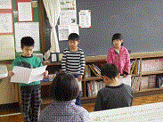 子ども達は、分校に戻り、別れの式で転出される2名の先生方へ呼びかけをしました。子ども達は、心を込めて呼びかけを言うことができました。