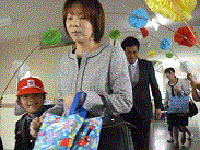 在校生が、花のアーチを作り、その中を1年生と保護者の方が手をつないで通っていきました。1年生は、とてもうれしそうでした。