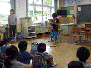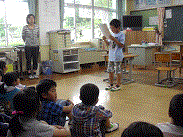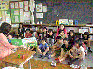 子ども達は、松下さんの読み聞かせをとても楽しみにしています。今日も、子ども達は、夢中になって楽しいお話を聞いていました。3名の1年生もにこにこしながら、お話を聞いていました。