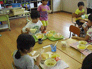 給食では、同学年の子ども達と楽しく食事することができました。昼休みも楽しく過ごしていました。