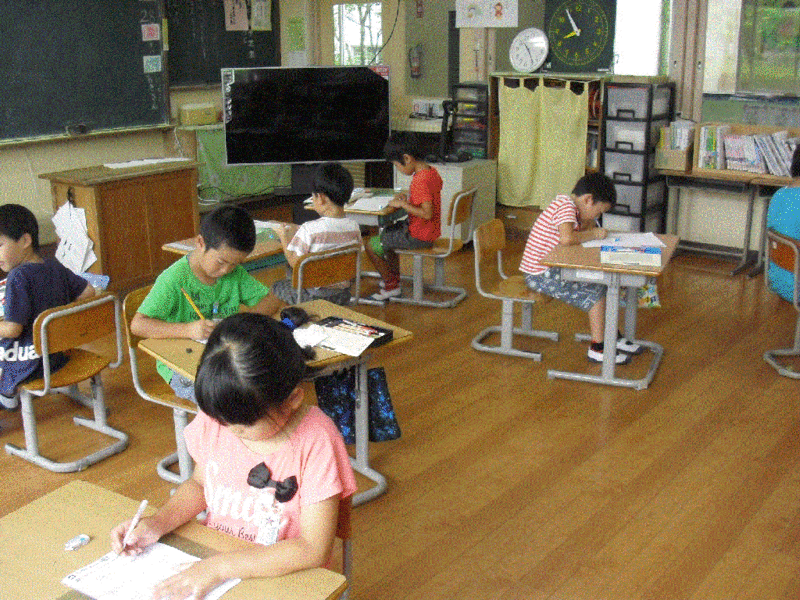 子ども達は、忘れた漢字をしっかり覚えようと、意欲的に取り組んでいました。分校では、その学年で学習した漢字を、しっかり習得させたいと考えています。