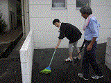 8月20日(日)の17時から、体育館の大掃除をしました。体育振興会の藤堂さん、夜間に山田分校を使用する地区の方、都於郡小学校のバレー少年団の代表者、学校職員でしました。窓や窓のみぞ、体育館入り口のスロープのこけ落としなど、日頃なかなかできないところを中心にきれいにしていきました。