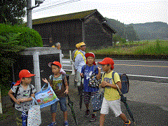 子ども達は、地区の方々の指導を受けながら、安全に気を付けて、登校することができました。