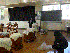 今日は、体育館掃除をしました。体育振興会の藤堂さん、都於郡小学校少女バレーの役員さん、夜間に体育館を使用する地区の方々、分校職員が、午後3時に集合し、トイレ、窓ふき、床のワックスがけ等をしました。
