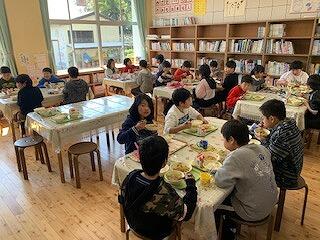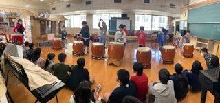 太鼓を一緒に叩いて、一緒に給食を食べて、