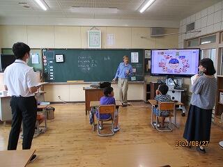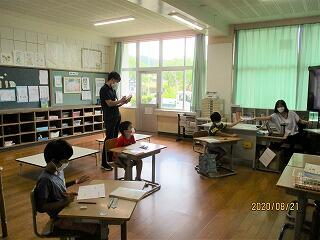 分校の児童は、休み時間に身体計測をしてもらいました。