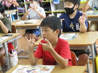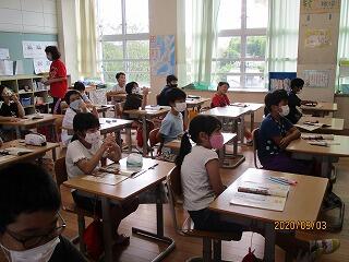 その間、本校4年と一緒の外国語活動の時間がありました。