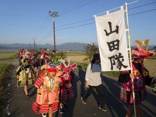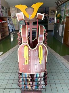 そして今朝は子どもたちが鎧甲姿で本校まで歩きました。