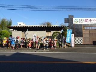 都於郡小学校のみんなが、鎧甲姿で登校し、