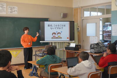 1月23日に西都市と姉妹都市である台湾の羅東鎮市の中学校の生徒と、三財中学校の8年生がオンラインで交流をしました。三財中学校からは、西都市や宮崎県のおススメのスポットを紹介しました。