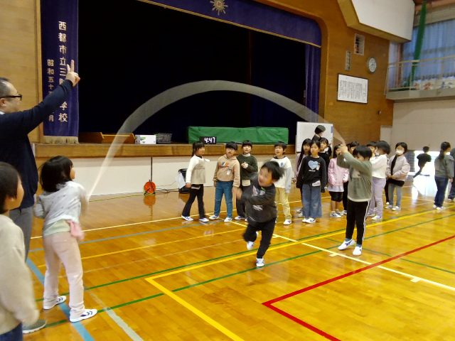 5分間とんだ後は、それぞれ何回とんだか発表しました。やはり上学年は、さすが!という回数でした!(6年生は300回以上!)