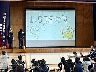 校長先生からのお話や表彰、冬休み中に気をつけることについてのお話がありました。