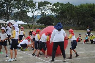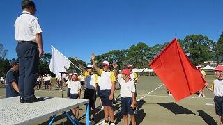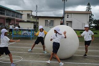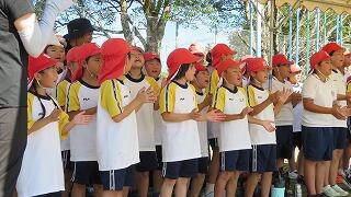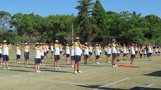 5日(火)運動会の予行練習が行われました。朝のうちは雨が降っていたので、体育館でできることをしていましたが、雨がやんだので、運動場に出て運動会本番と同じ流れでの予行練習を行うことができました。