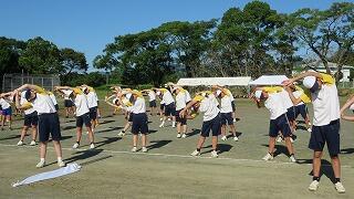 全体練習は朝の少しでも涼しい時間に実施しており、暑さの中、時折秋風を感じる時もありました。