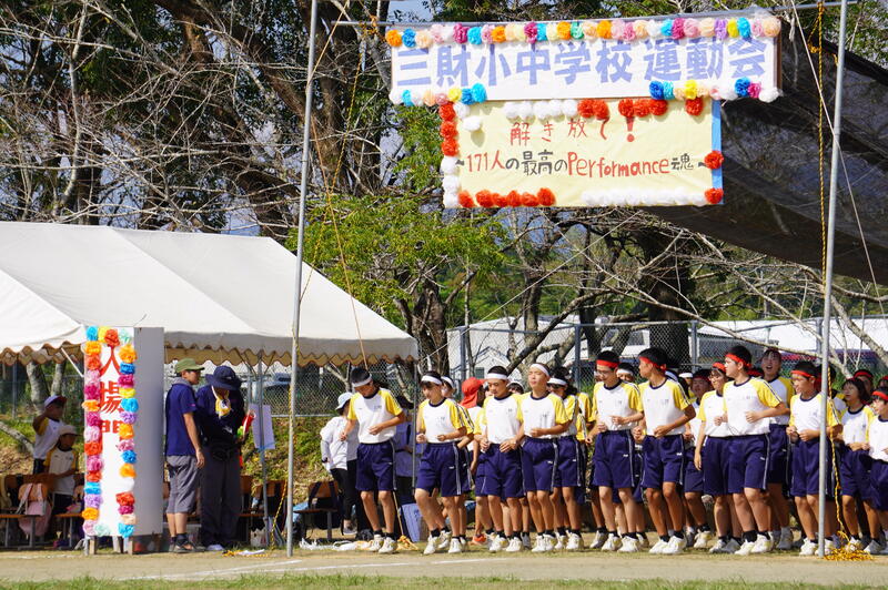 今年の運動会スローガンは「解き放て!~171人の最高のperformance魂~」です。171名の児童生徒それぞれが一生懸命運動会に向かっています。運動会に来てくださる皆さま、三財っ子の一生懸命で楽しく元気な姿を楽しみにしていてくださいね♪