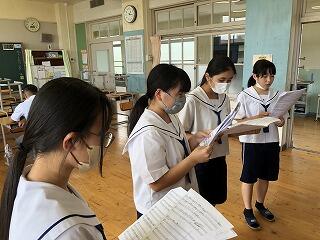 合唱コンクールでは、体育大会直後から練習に取り組んだ課題曲「ぜんぶ」、自由曲「生まれてはじめて」(7年)、「君の隣にいたいから」(8年)、「僕のこと」(9年)を、見事に歌い上げました。
