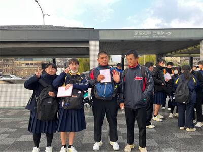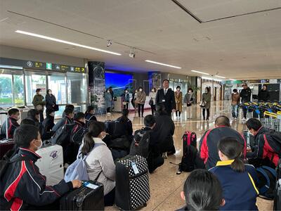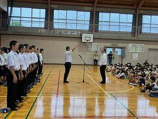 校長先生から「出すべき時にしっかりと力を出せることが大切、勝っても負けても礼儀を尽くしてほしい。あのチームに負けたならしょうがないと思ってもらえるチームとなり、堂々と戦ってきなさい」という激励の言葉をいただいた生徒たちでした。