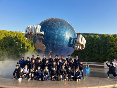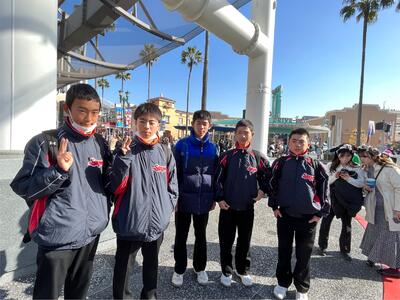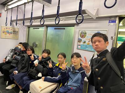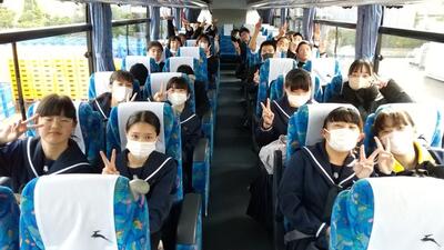 たくさんの保護者、子どもたち、中学生、先生方に見送られて、いよいよ修学旅行へ出発です。